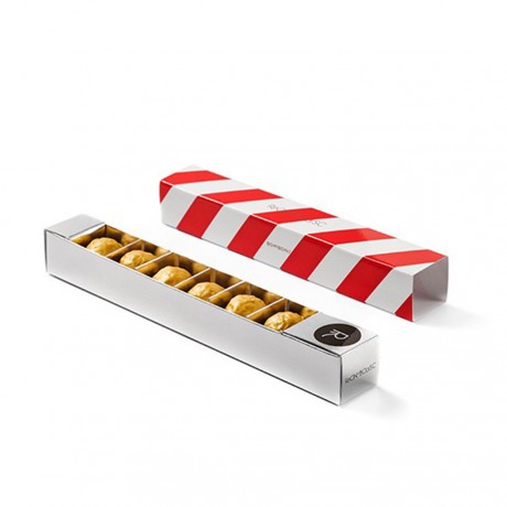 8,50 €Bombó amb interior cremós. Una emulsió de xocolata amb llet, avellanes i dragea efervescent.