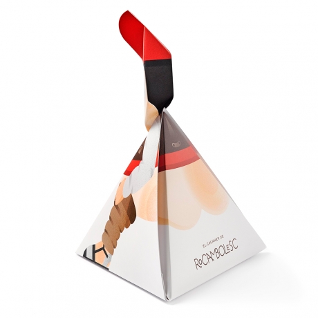 La forma característica de este turrón, hacer de él un regalo divertido y Rocambolesco para la época de Navidad.