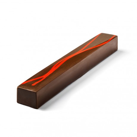 Inspirado en el postre "Cromo Naranja" de Jordi Roca, el poder del efecto de los colores. Tres texturas perfectamente diferenciadas en el interior de esta pieza de turrón.